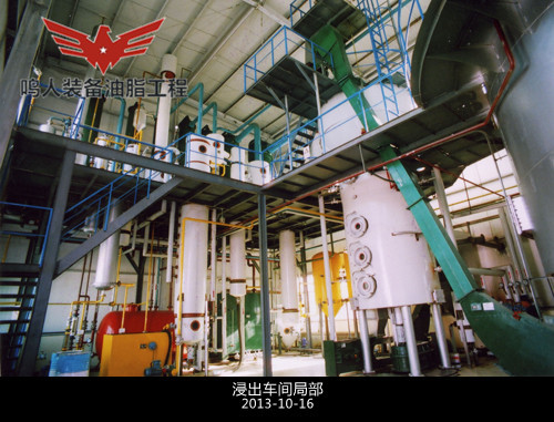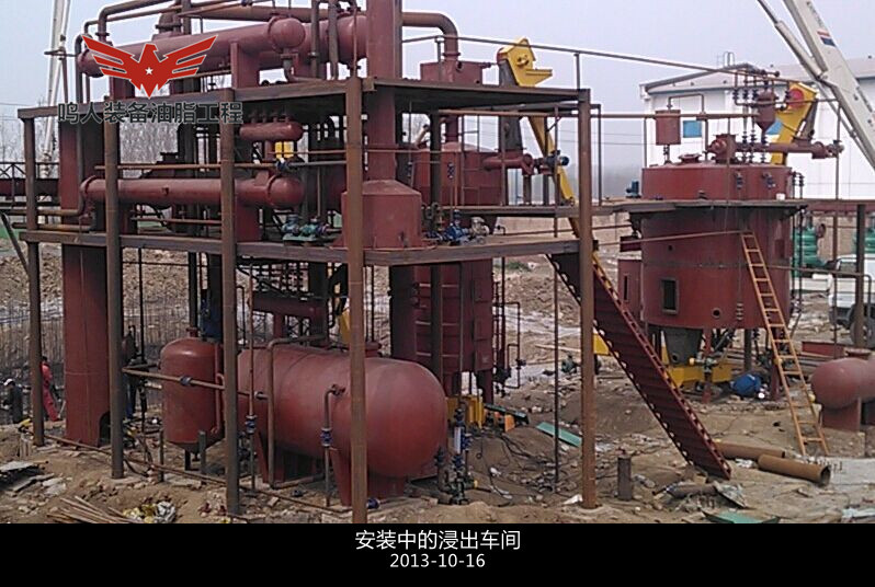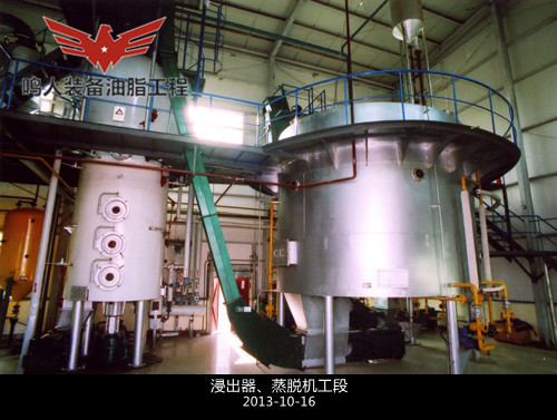 本車間包括:預(yù)處理餅的浸出、混合油的負(fù)壓蒸發(fā)、汽提、溶劑蒸汽冷凝、尾氣回收等工序。