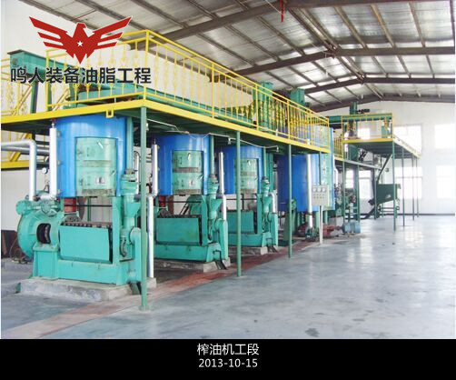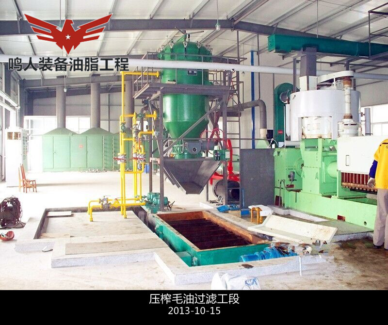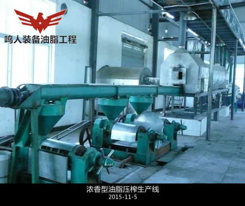 工藝流程:原料→除雜→破碎/壓胚→蒸炒調(diào)質(zhì)→壓榨→過濾→毛油